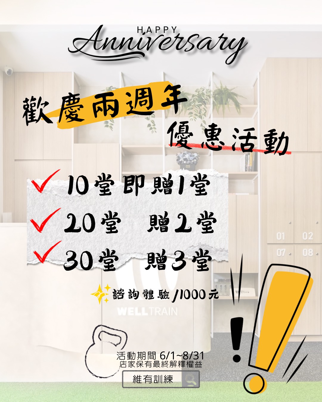 #維有訓練 #welltrain #週年慶 #優惠活動 #私教 #一對一